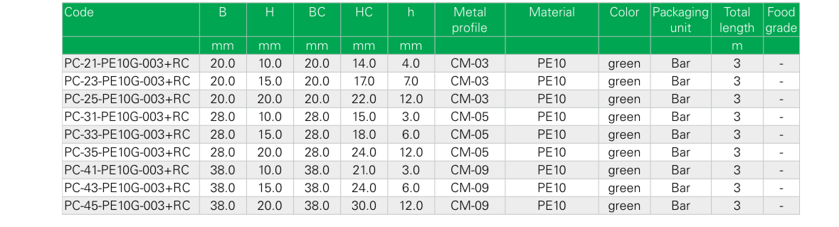 Gerçek PE 1000 çok düşük sürtünmeli PC serisi konveyör alt kızak ve sacları